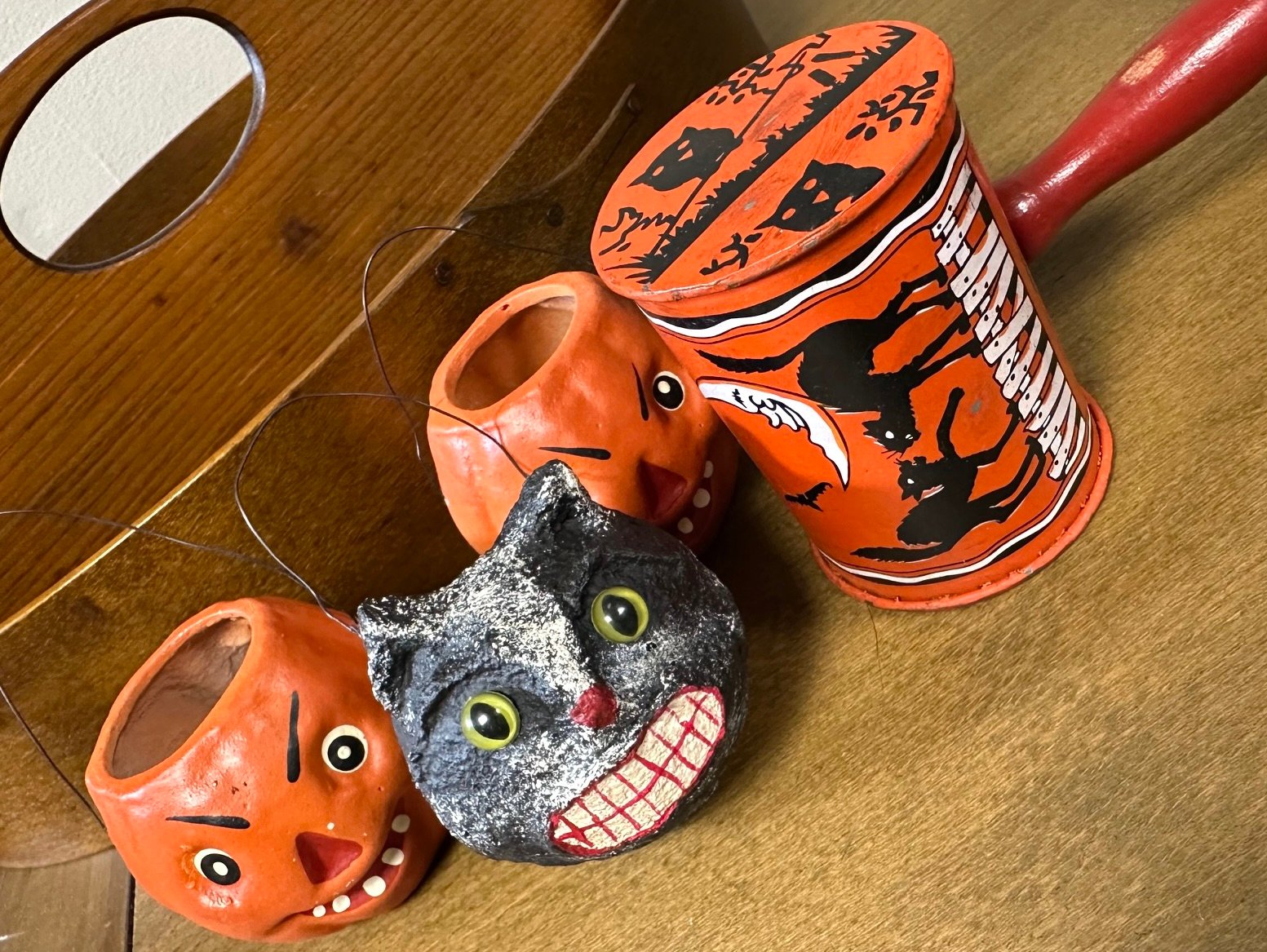 The 2 Jacks are composition from Stamm House, the kitty is painted over styrofoam.