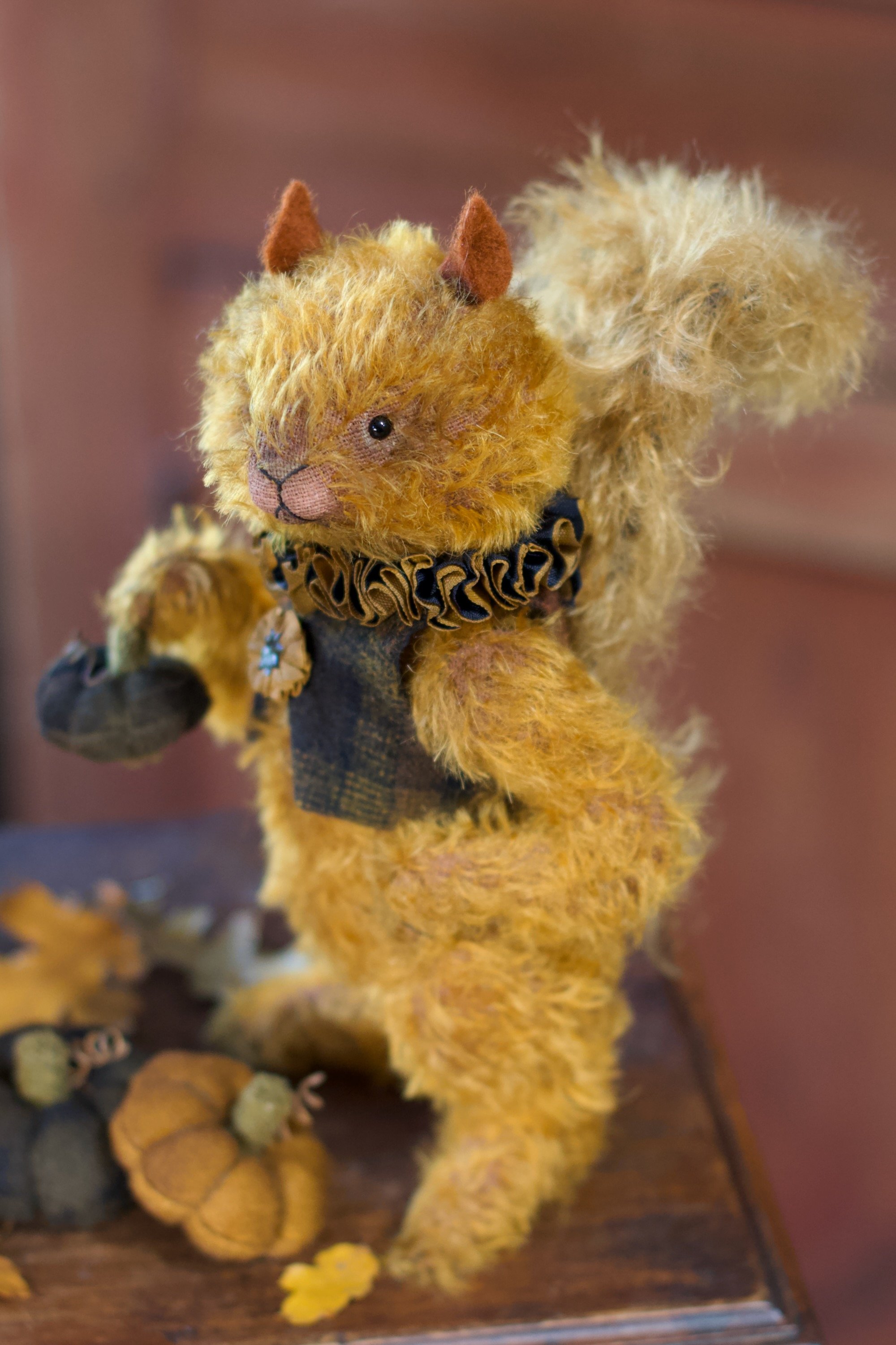This sweet fellow is a free standing squirrel of rusty German mohair.